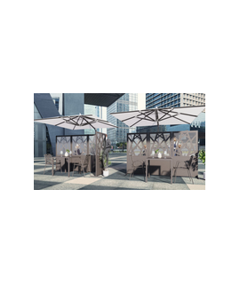 The dividers can be linked together to form a single structure. In windy areas they must be blocked with weights, for example with planters. The plexiglass can be taken apart for a more thorough cleaning and then put back on. Square section leg 25x25 mm with internal and external galvanization. Adjustable feet. Fabulous for indoors or outdoors, to furnish your garden or terrace with sober and refined taste, and also suitable for contract, bars, ice cream parlors, bistros, cafes, farmhouses.
