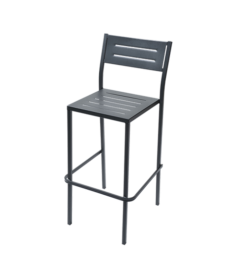 Painted metal footstool, with a very clean, essential and modern, but also comfortable line. Available in anthracite or white colors. Perfect for bars, cafes, residences, restaurants, waterfront clubs, hotels, b & bs, bathing establishments. Ideal for your outdoor spaces, garden or terraces. Simple and refined. Stackable.