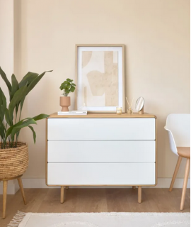 LENA 99 cm chest of drawers in solid wood and ash veneer