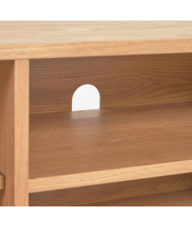 Beautiful and refined TV cabinet, structured in solid oak wood and oak veneer, with 2 flap doors, 2 open compartments, practical cable guides and solid wood feet equipped with plastic grommets to protect the floor. When utility and good taste come together and give life to a fabulous TV cabinet that can stand out in any type of furniture. Under the accessories of the same line to match. All measurements are in the photo of the data sheet.