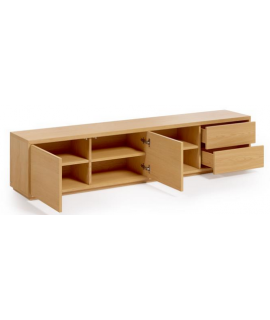 Refined TV cabinet, with a simple and essential line, with a modern design. Structured oak veneer that gives a lot of light to the environment. Wonderful piece of furniture, simple, minimal, but beautiful and fascinating. For a design furniture that does not tire over time, an essential line rich in naturalness.
