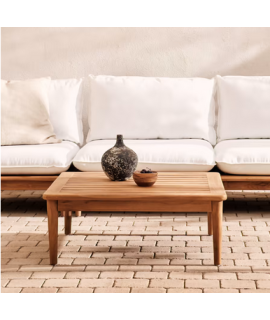 Refined and modern, wonderful coffee table with slatted top in solid teak wood. Very resistant, treated for long life and UV protection, suitable for outdoor use. A design coffee table to complete your outdoor furniture. Below you will find the complements of the same line to match. All measurements are in the photo of the technical sheet.