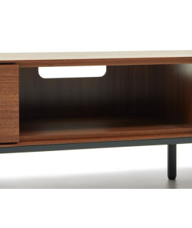 Captivating line for this elegant and prestigious TV stand. In walnut veneer, with 3 push-open drawers and matt anthracite metal frame. A wonderful piece of furniture, which transmits brightness to the environment. Fanciful and refined, gritty and dynamic, it focuses on practicality and an elegant design.