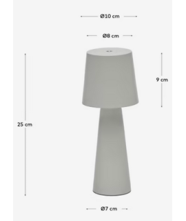 Refined and beautiful portable LED lamp in painted metal. Having no wires, you can position it comfortably wherever you want, to bring light everywhere and choose between different light intensities as it is adjustable. Rechargeable battery with USB cable included. All measurements are in the photo of the technical sheet.