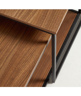MAWI set of 2 coffee tables in walnut or oak veneer and black metal structure