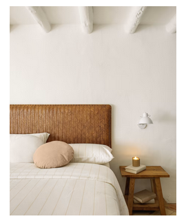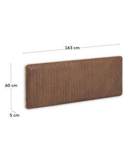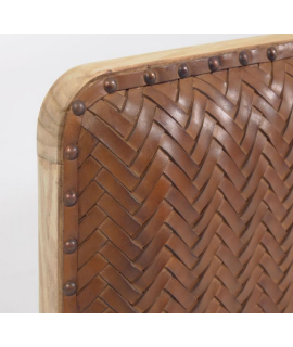 Headboard made with strips of genuine brown natural leather, hand-woven on a solid teak wood structure. For a timeless decor. The measurements are indicated in the photo of the technical data sheet.