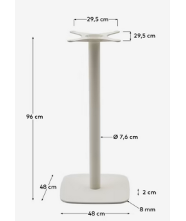 Beautiful base with round column in white painted steel. Square base measuring 48x48 cm, with adjustable under-base feet. The base is 96 cm high, it is designed for a round top with a maximum diameter of 90 cm and for a 90x90 cm square top. Table base for bars, shops, ice cream parlors, cafes, restaurants, waterfront venues, hotels, beach clubs. All the measurements in the photo of the technical data sheet by scrolling through the photos with the arrow