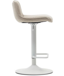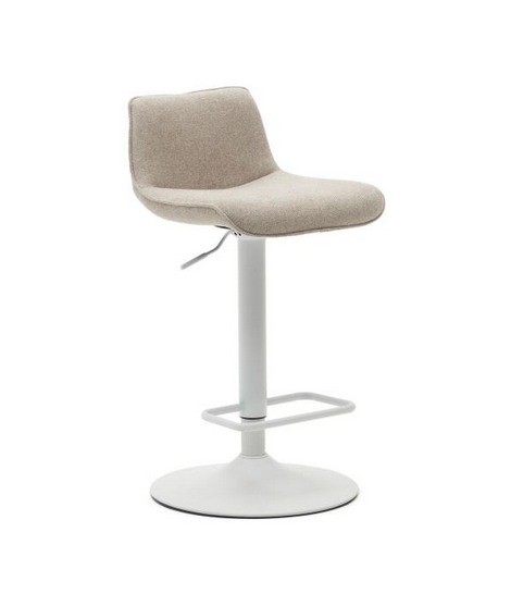 AVERSCI seat h 64-86 cm in beige chenille fabric adjustable height matt white steel piston design stool