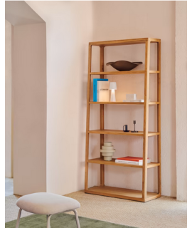 Essential, solid and modern bookcase in solid natural oak wood with an attractive design. The aptitude for manual and quality work, attention to detail and the pursuit of perfection are elements that characterize this very versatile piece of furniture, with an important structure and artisanal features. The naturalness and preciousness of the wood are even more highlighted by the design.