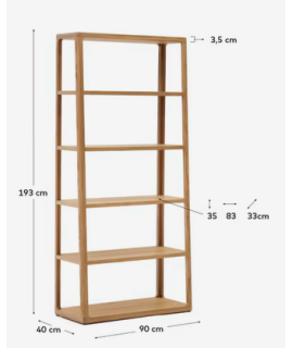 DALDA 90x193 h cm bookcase in solid natural oak wood