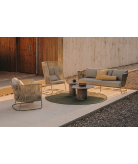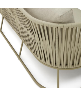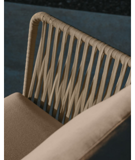 Refined outdoor sofa, inspired by the 1950s. Beautiful and bold, thanks to the resistance and practicality of the material with which it is made, in polyester rope on a steel structure and comfortable padded seat and back cushions, it is suitable for your outdoor environment, garden or terrace. A fascinating line to furnish with taste and beauty.