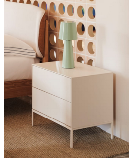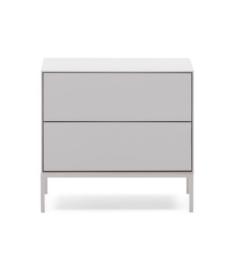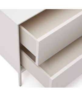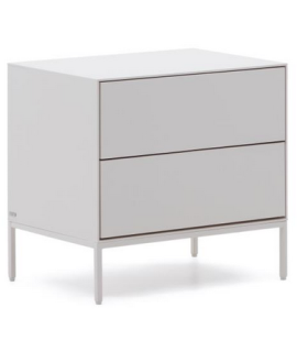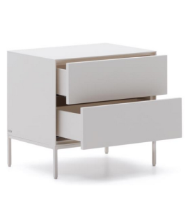 Captivating line for this elegant and prestigious bedside table. In white lacquered MDF, with 2 push-open drawers and matt white metal frame. A wonderful piece of furniture, which transmits brightness to the environment. Fanciful and refined, gritty and dynamic, it focuses on practicality and an elegant design.