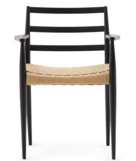 ELIANIS chair with armrests in solid oak black finish and seat in rope
