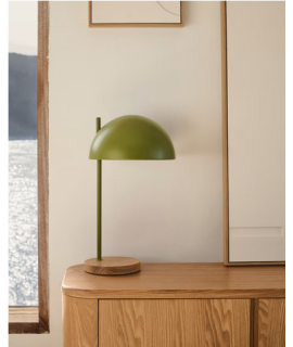 Refined and simple in green metal and ash wood table lamp. Thanks to the clean and design line, it is perfect for tastefully furnishing any environment, from classic to modern. Wonderful and intriguing, beautiful the light it gives off and the atmosphere it creates.