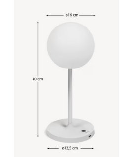 Refined and designer, this table lamp with integrated LED light, in polyethylene and white painted aluminium, can be for indoors or outdoors. The LED lamp lasts longer and consumes less. Furthermore, as it has no wires, you can position it comfortably wherever you want, to bring light everywhere. Rechargeable with the wire to be attached to the mains plug.