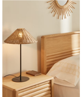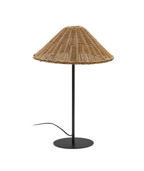 A particular table lamp with an ethnic taste, a piece of furniture made of rattan and black metal. A refined genre with a strong design and character. A charming colonial rustic style.