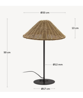 DRAGON rattan table lamp in natural fiber and black metal