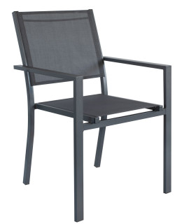 Chair with armrests with structure in painted aluminum and textilene for seat and back, available in colors: anthracite, white or dove gray. Perfect for home, garden, balcony or terrace, but also for contract, bars, cafes, residences, restaurants, waterfront clubs, hotels, b & bs, bathing establishments. Ideal for your outdoor spaces. Simple and refined. Stackable.
