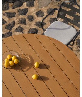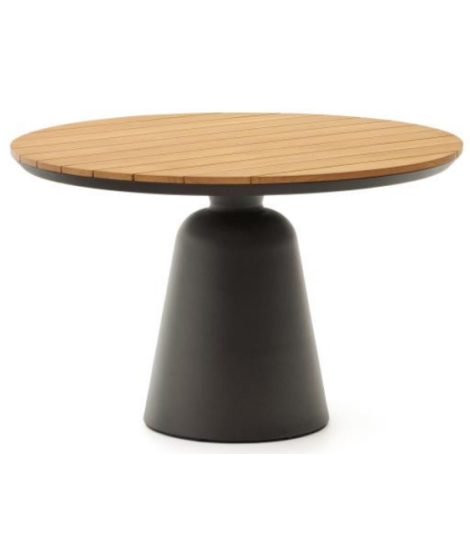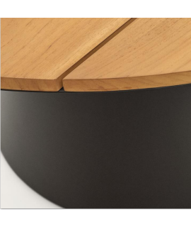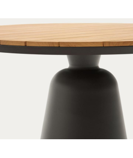 CRETA Ø120 table gray aluminum base and solid teak wood top for indoors and outdoors