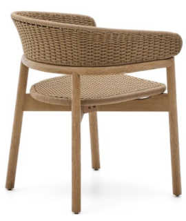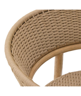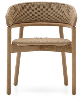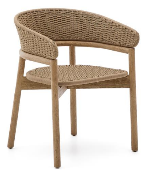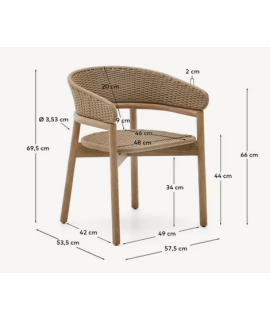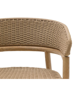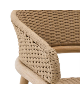 Fabulous chair with armrests with a solid acacia wood frame, natural finish, treated with PNZ oil for long-lasting durability and UV protection and hand-woven polyester rope, resistant to UV rays and weather. Each piece combines the nobility of solid acacia wood, with a brushed finish, which highlights its natural tones and unique grain, making each piece different from the other. Maximum load 120 Kg. In the photo of the technical sheet, scrolling with the arrows, there are all the measures. Below are the complements of the same line.