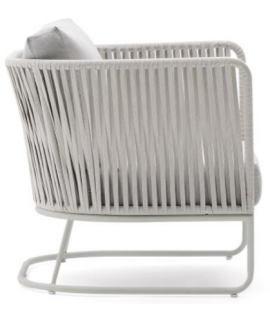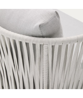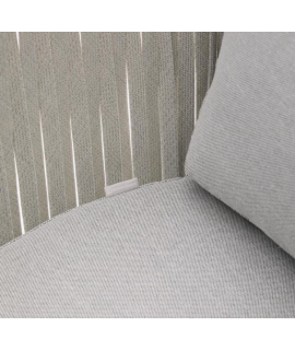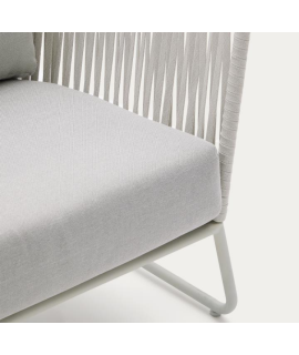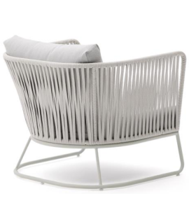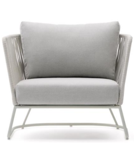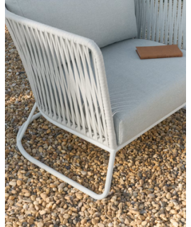 Refined outdoor armchair, inspired by the 1950s. Beautiful and bold, thanks to the resistance and practicality of the material with which it is made, in polyester rope on a steel structure and comfortable padded seat and back cushions, it is suitable for your outdoor environment, garden or terrace. A fascinating line to furnish with taste and beauty.