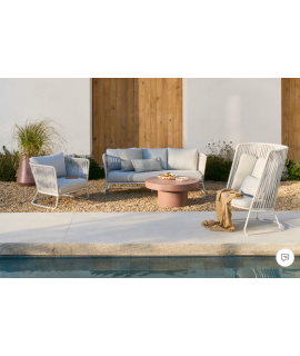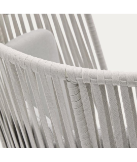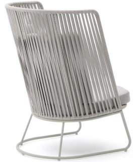 Refined outdoor armchair, inspired by the 1950s. Beautiful and bold, thanks to the resistance and practicality of the material with which it is made, in polyester rope on a steel structure and comfortable padded seat and back cushions, it is suitable for your outdoor environment, garden or terrace. A fascinating line to furnish with taste and beauty.