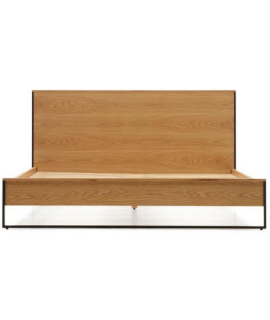 TANA double bed with 160x200 base in oak veneer and black steel legs