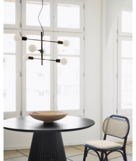 Suspension lamp that through its aesthetics and finish, adapts to any decor and creates the atmosphere. With 6 lights and articulated arms, black metal structure. Bulbs not included with large E 27 type: low consumption or energy saving, led or incandescent. Energy class A ++ Suitable for home or contract.