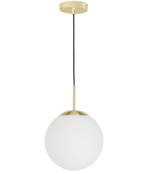Minimalist genre for this metal chandelier with enameled glass sphere and gold details. Illuminates and diffuses light, in a surprising way, throughout the room. The beauty of the lampshade creates a pleasant and intimate effect.