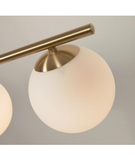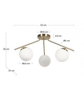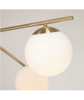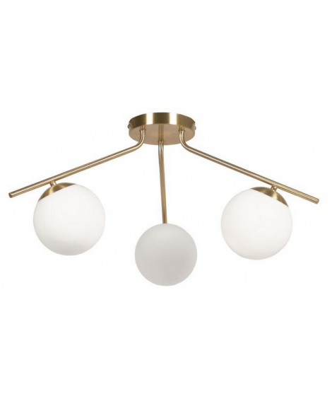 Elegant and refined gold metal chandelier with three enameled glass spheres. It illuminates and diffuses light, in a surprising way, throughout the room. The beauty of the lampshade creates a pleasant and intimate effect.