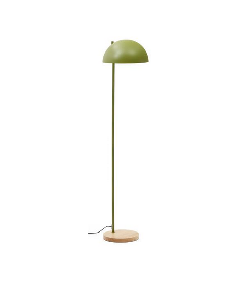 Beautiful and delicious ground lamp, made in green metal and ash wood. Suitable for the living room, study or bedroom. Prepared for a large E27 socket lamp (not included), with low consumption or energy saving, LED or incandescent. In the photo of the technical sheet there are all the measures. Below you will find the other complements of the same line to match.