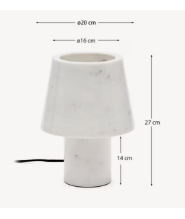Wonderful table lamp in white marble. Arranged for lamp (not included) E14 connection and type: low consumption, led or incandescent. All measurements are in the photo of the data sheet.