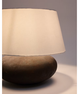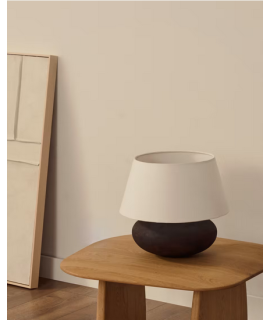 Refined and simple table lamp in black terracotta effect metalwith fabric lampshade. Thanks to the clean and design line, it is perfect for tastefully furnishing any environment, from classic to modern. Wonderful and intriguing, beautiful the light it gives off and the atmosphere it creates.