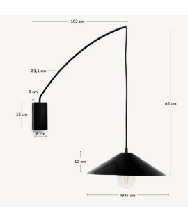 Beautiful and delicious metal wall lamp, color choice. Suitable for the living room, study or bedroom. Prepared for a large E27 socket lamp (not included), with low consumption or energy saving, LED or incandescent. In the photo of the technical sheet there are all the measures. Below you will find the other complements of the same line to match.