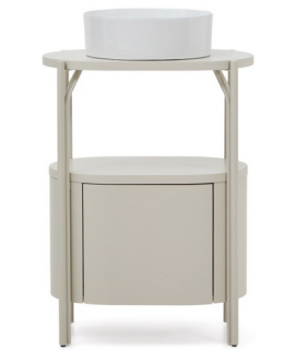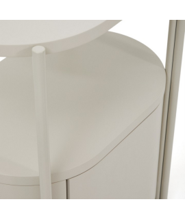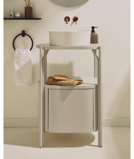 This extremely versatile piece features a soft line. It can be placed in the living room, in the entryway as a convenient console table, or in the bathroom. Its practical materials create a functional and welcoming space, offering practicality and organization. Made of water-repellent lacquered MDF, it features a pull-out drawer with a snap-open mechanism and soft-close mechanism. A wonderful furnishing accessory that brings light to the room. Intriguing and refined, bold and dynamic, it emphasizes practicality and an elegant design.