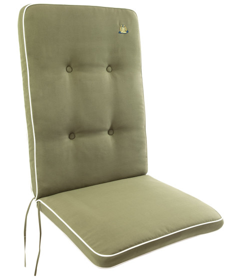 Outdoor cushion for armchair with low backrest, with backrest cm 68 h, in a pleasant and delicate green colour, which recalls spring and white contrasting piping. Made of very practical stain-resistant polyester fabric, very resistant, removable and machine washable. Wonderful cushion to give a touch of color and liveliness to your outdoor furniture. 4 cm high ultra-resistant padding.