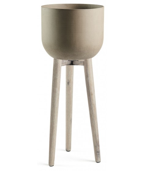 Beautiful tall and slender planter, with legs in bleached acacia wood and a large polycemento container. Extremely versatile, you can put it inside or outside your home. From the new and fresh line.