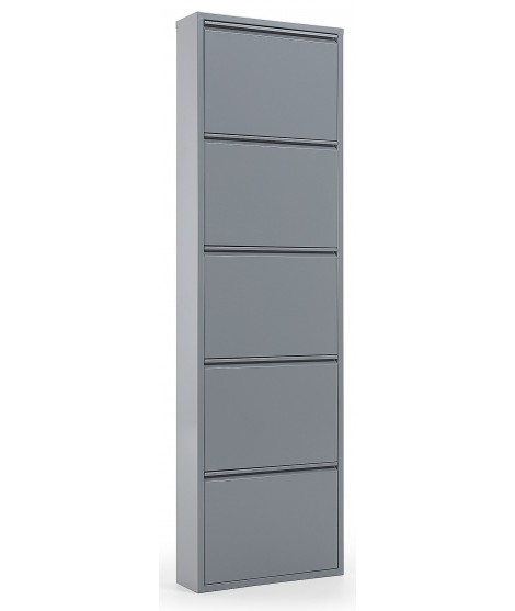 Comfortable shoe cabinet in painted metal with 5 flap doors in the colors: white, graphite, gray.