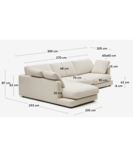 BIORN 4-seater sofa 300 cm with chaise longue in beige chenille