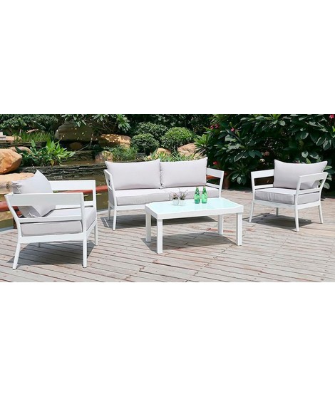 Light and sober line for this fabulous polypropylene lounge set in white, gray or brown. Consisting of two armchairs, a 2 seat sofa and coffee table. Perfect for outdoor environments such as bars, cafes, restaurants, hotels, bathing establishments, beachfront venues, exhibitions and fairs and outdoor environments in general.