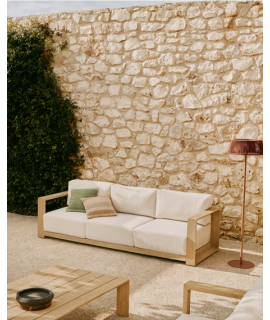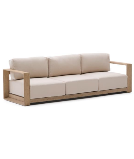 LINKA 3 seater sofa 249 cm in solid acacia wood with light finish for outdoor garden terraces and inside the house or farmhouses