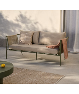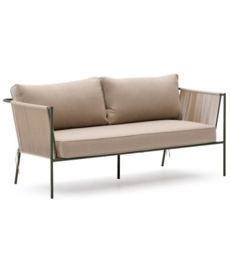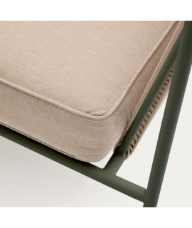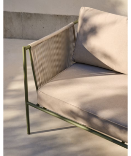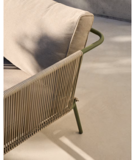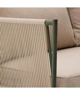 EDFU sofa 178 cm in ecru synthetic rope and green galvanized steel legs for outdoors
