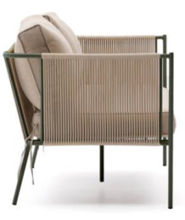 Sofa made of hand-woven ecru polyester rope, resistant to UV rays. The green galvanized steel of the structure is a highly resistant material, ideal for outdoor use, much more resistant than the common one because it is resistant to rust and corrosion. Suitable for indoor or outdoor use. Below you will find all the accessories of the same line to match. All the measurements are in the photo of the technical sheet, scrolling with the arrows.