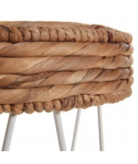 Charming small table made of hand-woven natural fiber and matt white painted metal structure. It also acts as a stool for an extra seat when you have guests at home and also beautifully furnishes your environment. Beautiful and refined, versatile, it perfectly adapts to your needs.