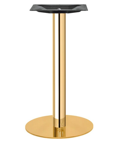 Fabulous base with round column for table in steel INOX with gold finish h. 72 cm. An innovative and refined design, beautiful, practical and resistant. Suitable for bars, ice cream parlors, cafes, restaurants, waterfront clubs, hotels, bathing establishments.