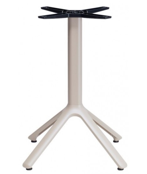 Square square column with rounded corners. The measure cm 73 is height per square square cm 80x80 or round cm 80 diameter; Cm 109 height for square square cm 70x70 or round cm 70 in diameter. High base 73 or 109 cm for indoor or outdoor table for bars, ice-cream parlors, cafes, restaurants, clubs, hotels, bathing establishments. 4-foot die cast aluminum base. Die-cast aluminum fixing brackets. Foldable handle with handle to facilitate the alignment of multiple tables. With 4 adjustable feet. Available in painted aluminum in colors: white, silver or anthracite.