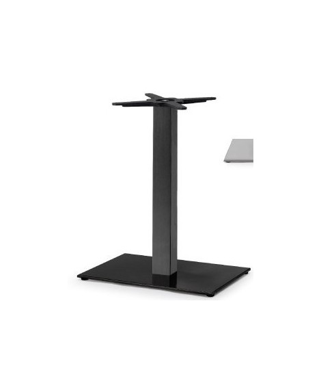 Square column 8 x 8 cm, in black painted steel. The base is 73 cm high and the base plate is rectangular in cast iron measuring 60x40 cm, with under-base ballast or with fixed feet. Suitable for tops up to 140x90 cm. Table base for bars, ice cream parlors, cafes, restaurants, clubs, hotels, bathing establishments. Brackets for fixing to the top in cast iron. Also available with 109cm height.