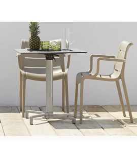 An innovative idea, base with folding movement, with handle to facilitate the alignment of several tables. For square top 80x80 cm or round 80 cm diameter. Beautiful, practical and durable for indoors and outdoors. Suitable for bars, ice cream parlors, cafes, restaurants, hotels. Available with top in colors: white, anthracite or silver.