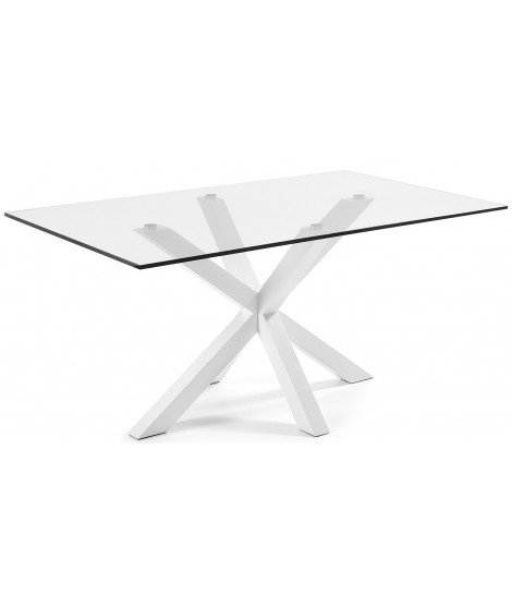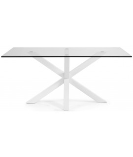 Fixed rectangular table with legs in white epoxy metal and 12 mm transparent tempered glass top. Available in three sizes: 160 cm. 180 cm. and 200 cm. It is the design table to choose, if at home you prefer a modern and elegant style, ideal for the study, kitchen or dining room. All available sizes are in the photos of the technical data sheets.