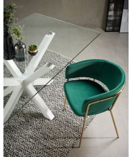 ATALA 160 or 180 or 200 cm tempered glass top and white steel legs fixed table